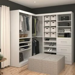 Bestar Pur Collection White 82-in 3 Drawer/Open Shelves Corner Storage Kit