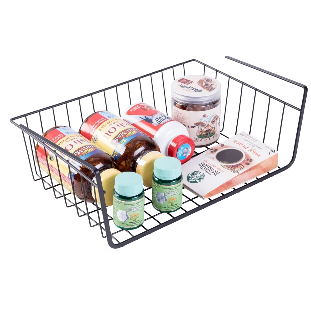 Organize your home with this hanging storage basket. Simply slide the basket over a shelf to add a convenient and large storage space for food, clothes, or bathroom accessories.