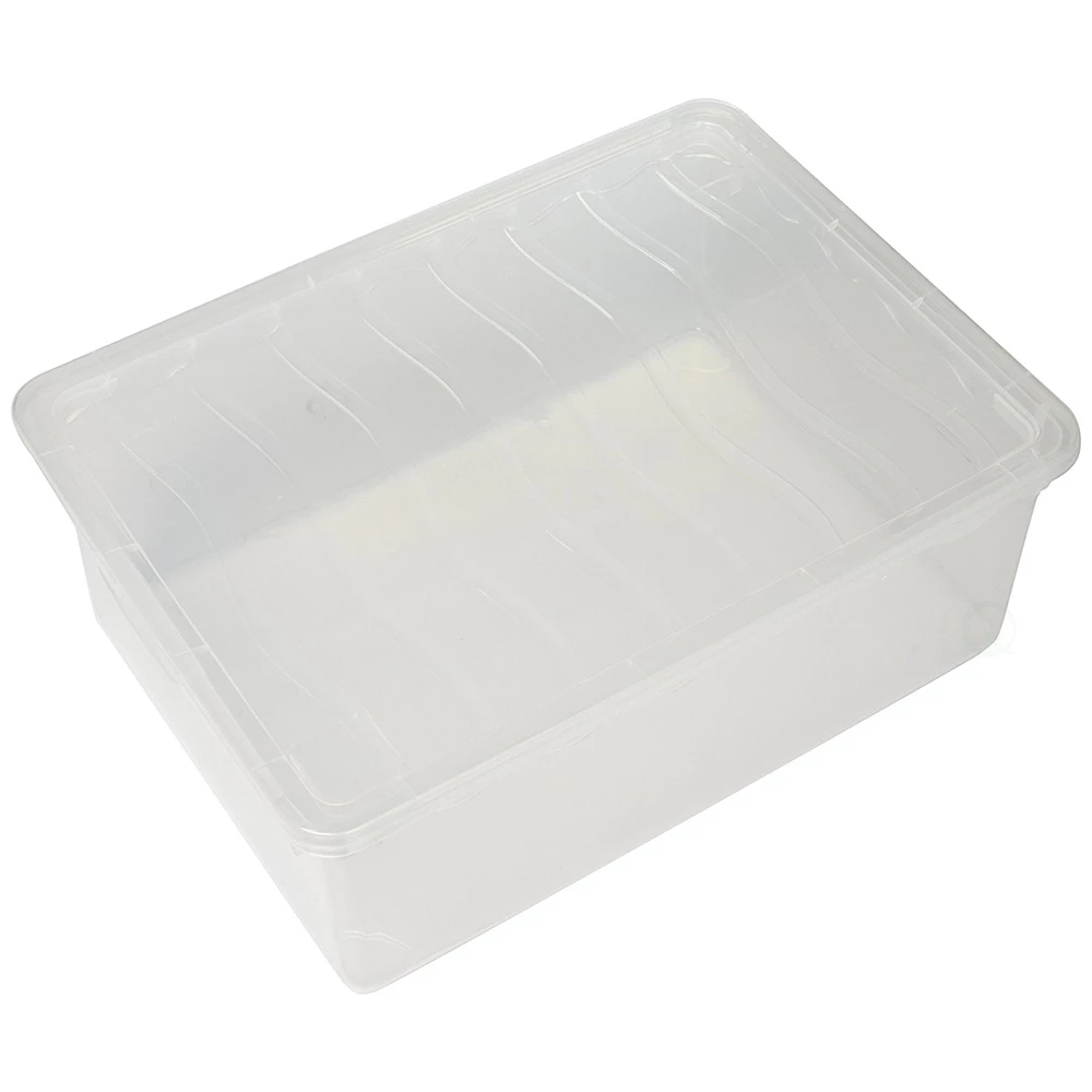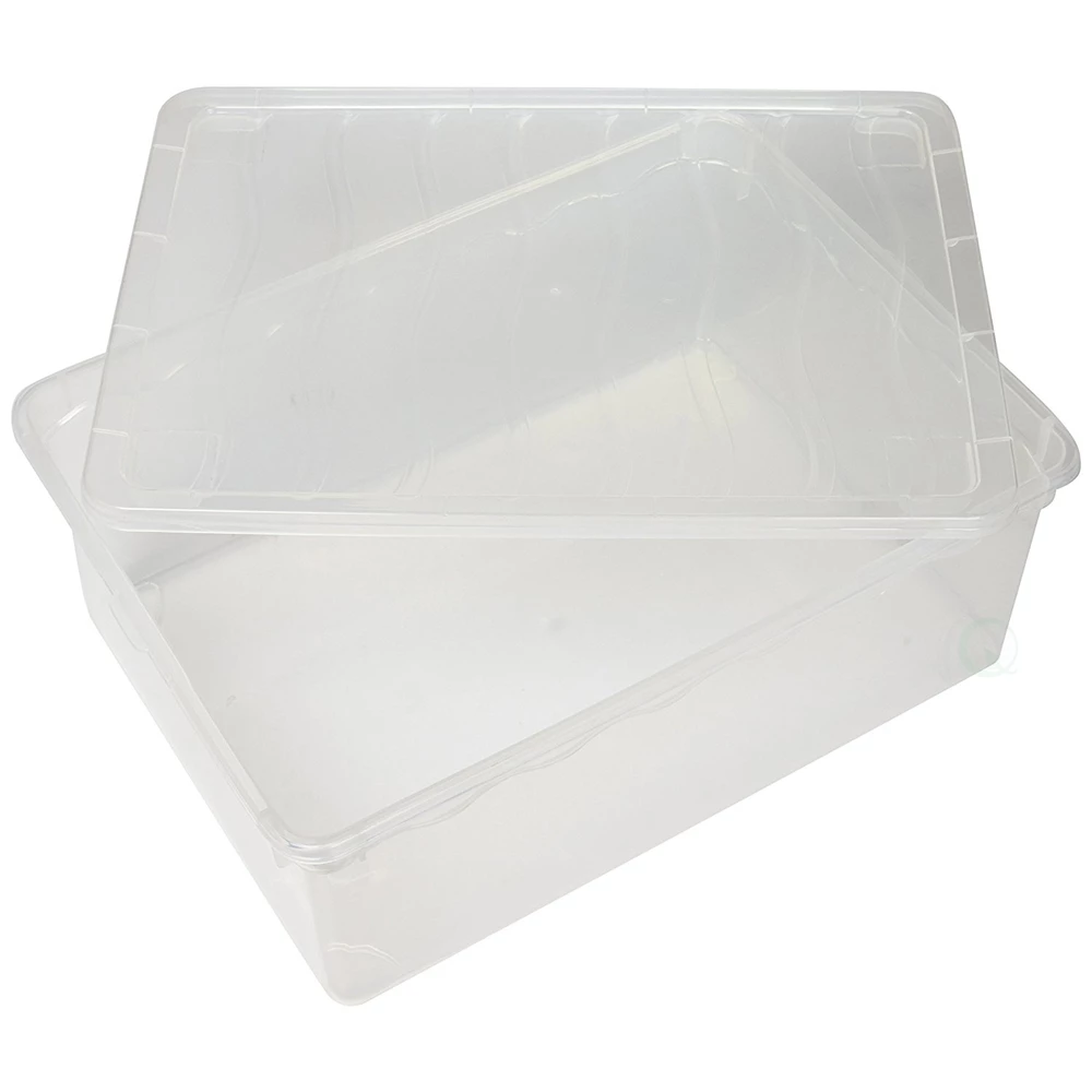 This sturdy, yet lightweight box is perfect for storing and organizing your clothes, shoes, accessories, craft items, office supplies and more. This storage box features a see-through base that allows the content to be easily identified. The lid snaps firmly onto the container to keep the content secure.