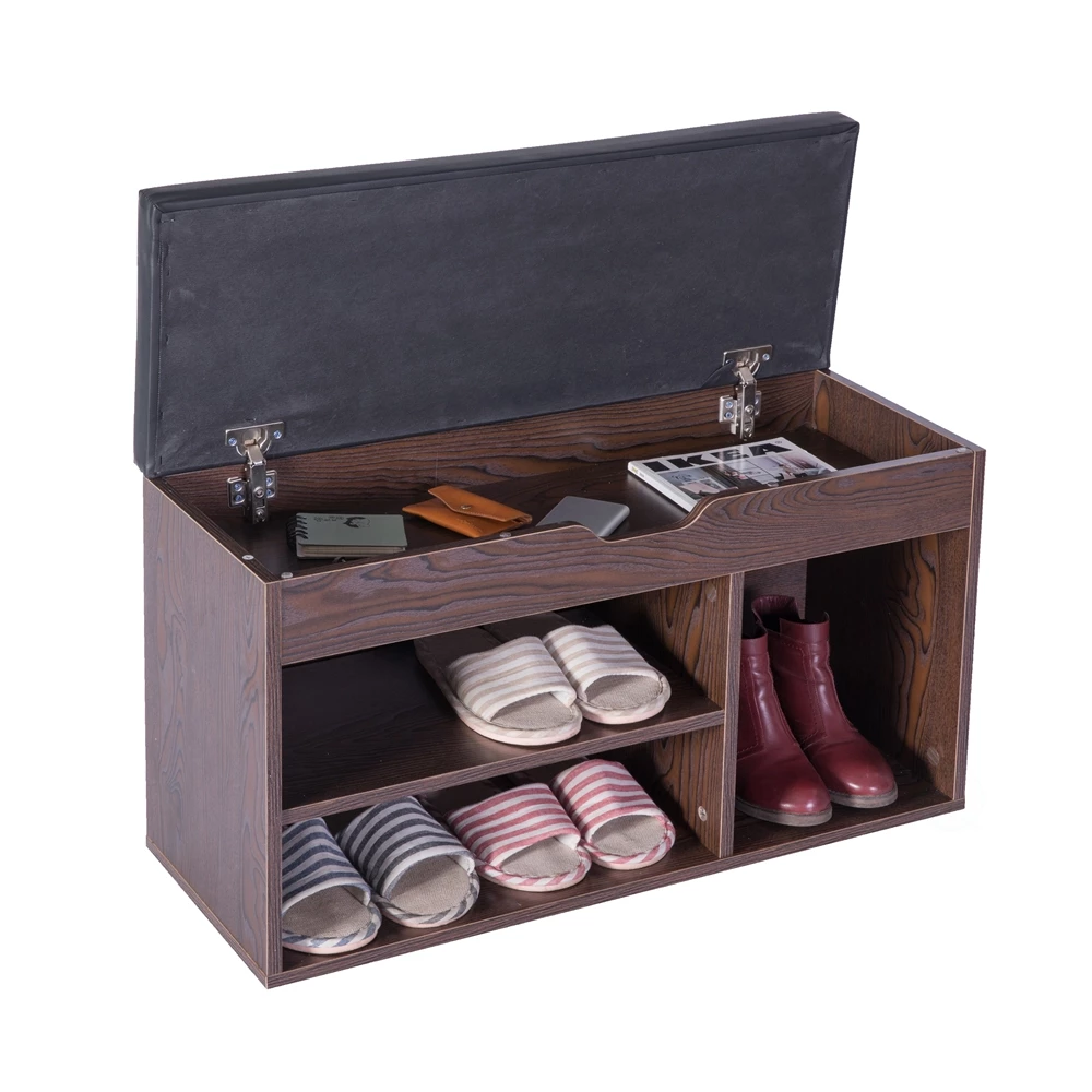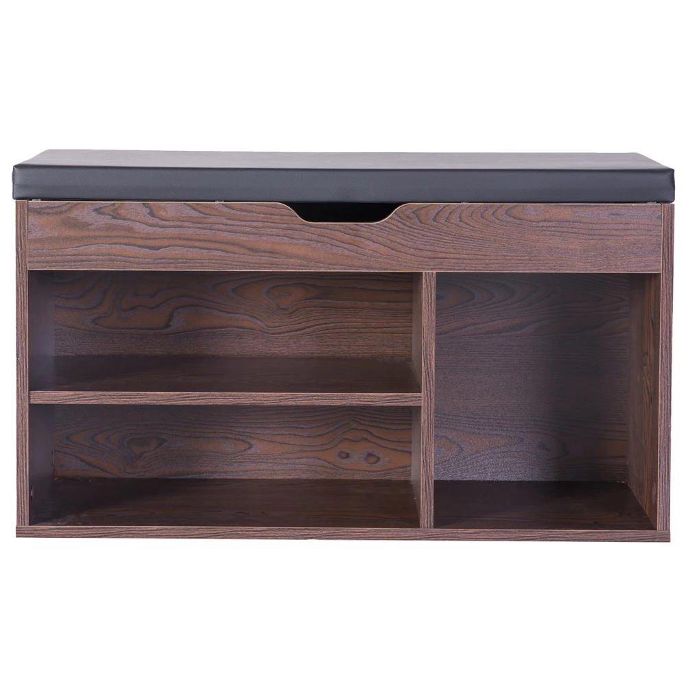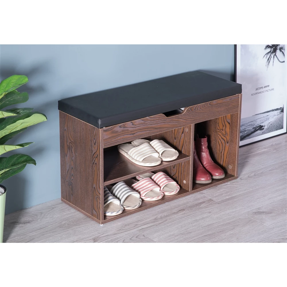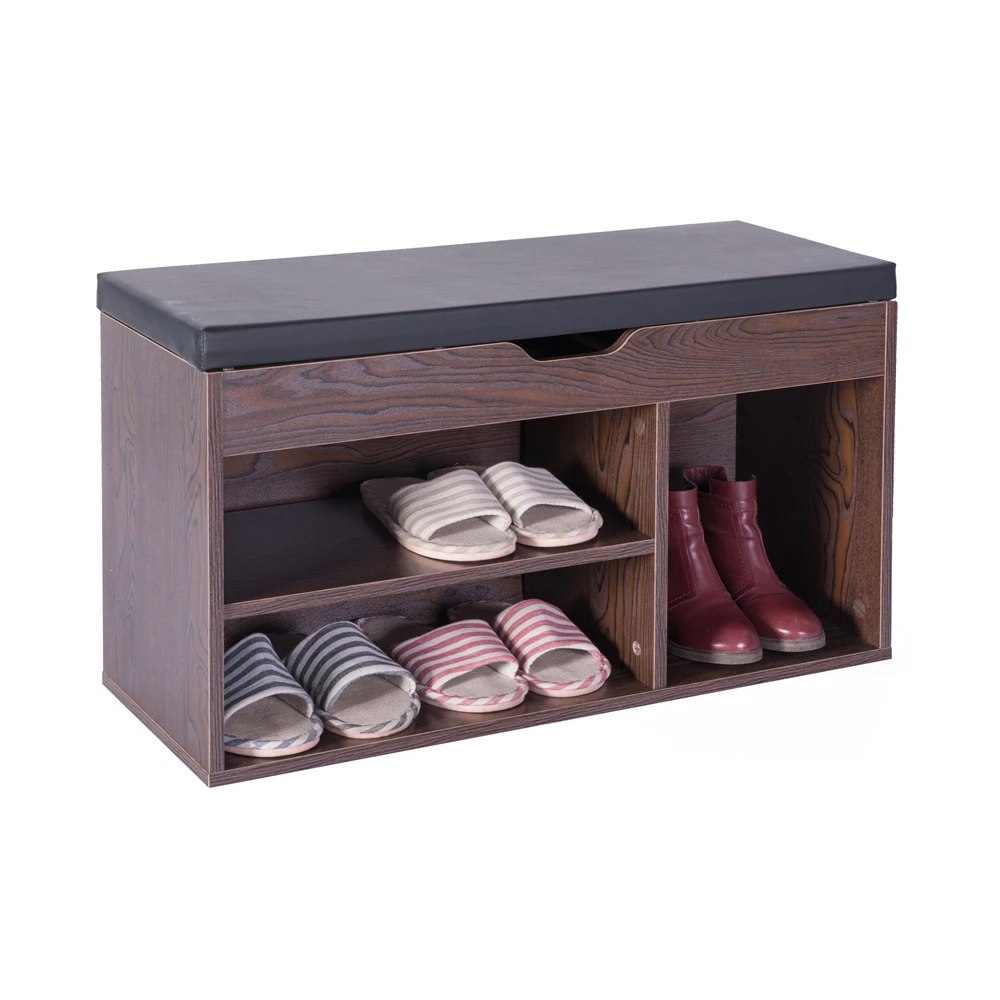Basicwise 5-Pair Brown Wood Shoe Storage Bench – 31.5-in X 11.75-in X 18-in