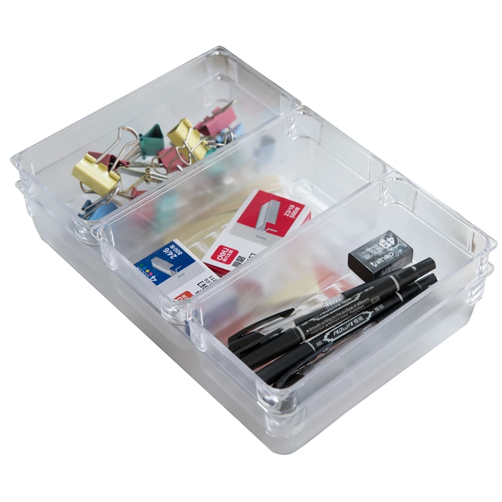 Basicwise Clear Plastic Multi-Use Insert Drawer Organizers – Set Of 4