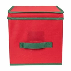 Northlight 16-in Red And Green Collapsible Christmas Decoration Storage Box With Handles