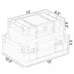 Vintiquewise Brown Wooden Storage Trunk With Faux Leather Belt – Set Of 2