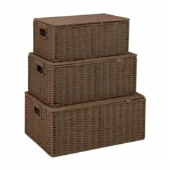 IH Casa Decor 10.25-in X 5.1-in X 10.25-in Brown Weave Baskets – Set Of 2