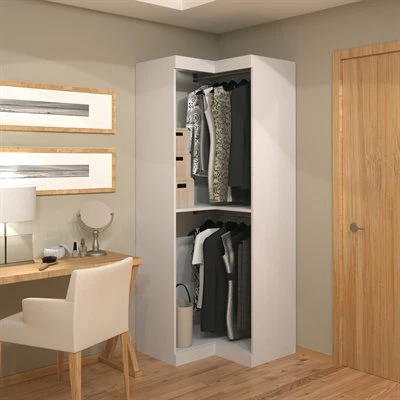Pur by Bestar Corner Storage Unit 1 fixed shelf 2 poles to hang clothes