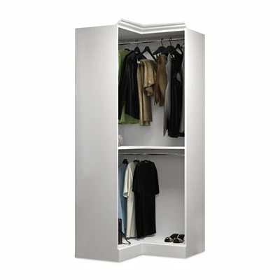 Versatile by Bestar 36-in Corner Closet Unit Durable 1.9 cm (0.75-in) shelves with a burn-, scratch- and stain-resistant finish melamine Finished with attractive molding 2 poles to hang clothes 1 shelf Easy to install Assembly required