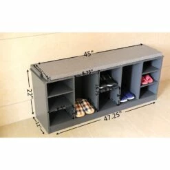 Basicwise 10-Pair Grey Wood Shoe Storage Bench – 47.25-in X 12-in X 22-in