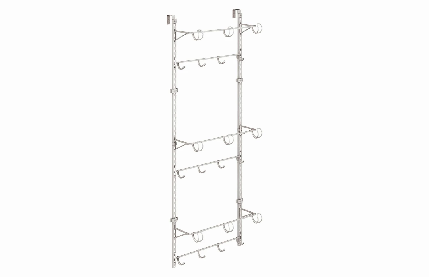 This adjustable hanging organizer from ClosetMaid is the perfect add-on to supplement storage. It can be wall-mounted or hung over a door. Perfect for organizing and storing handbags of all sizes or scarfs in one area, this organizer can be adjusted to fit your need and can be mounted in no time. It has 6 adjustable tiers with 21 hooks of different depths. Installation hardware included.