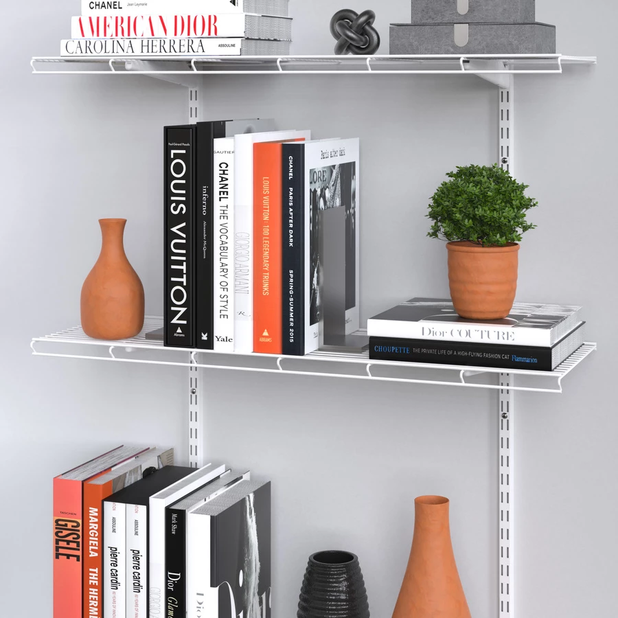 Get the closet ShelfTrack shelf to help organize the home better. It is an ideal shelf for arranging certain items in stacks. Fit the ClosetMaid bookshelf into different desired shapes. Its steel material can withstand stress. The white colour finish is great for styling. Easy installation is possible with the adjustable ShelfTrack system that allows it to fit any part of the home.