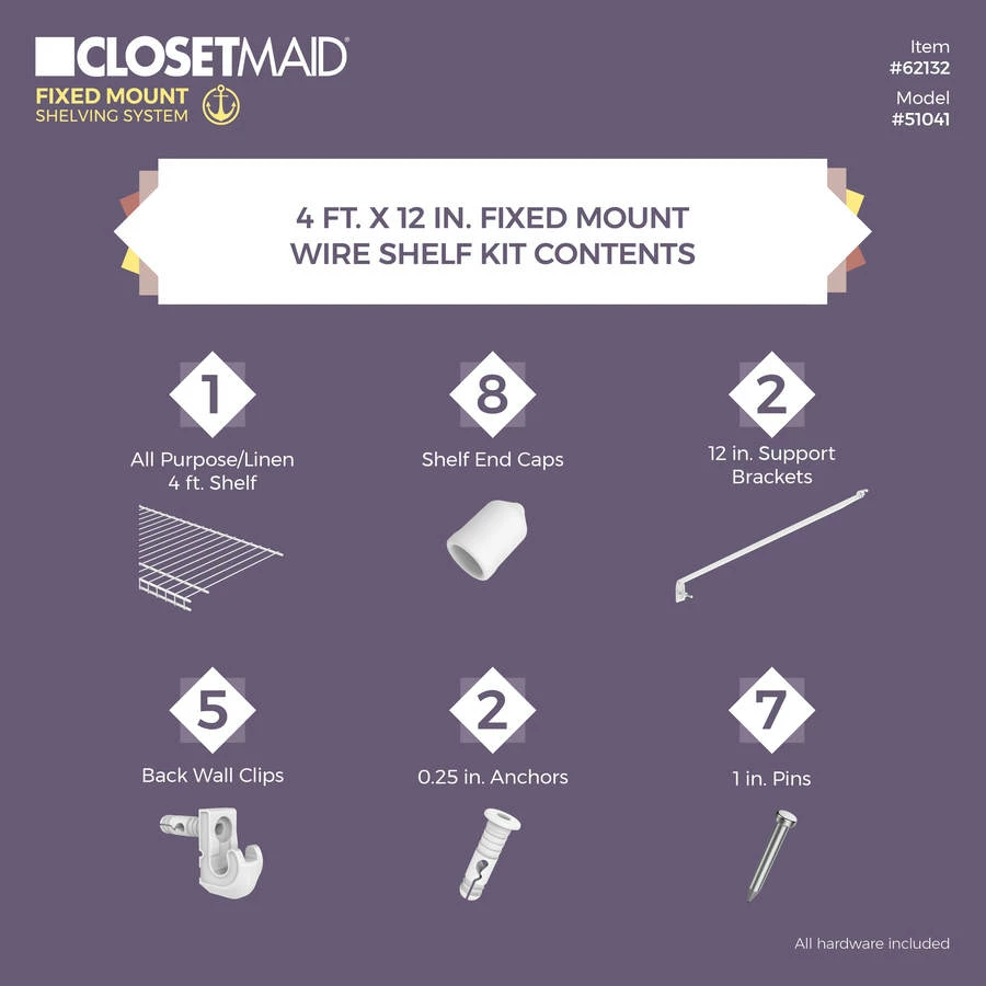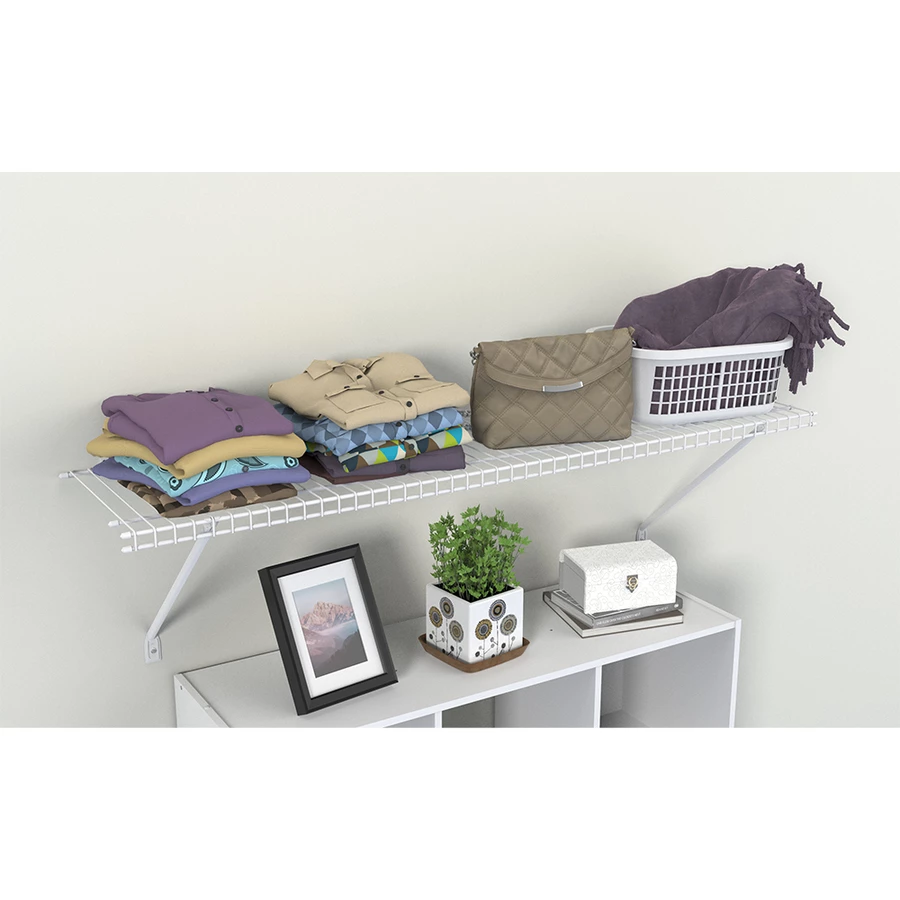 This sturdy, vinyl coated wire shelf is great in a closet, utility room, laundry room or craft room. Hardware and installation instructions included.