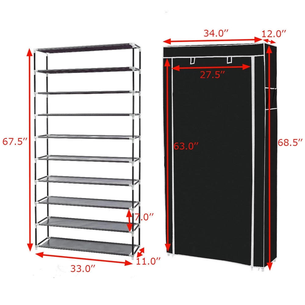 - Shoe rack with zippered cover keeps your shoes away from dust