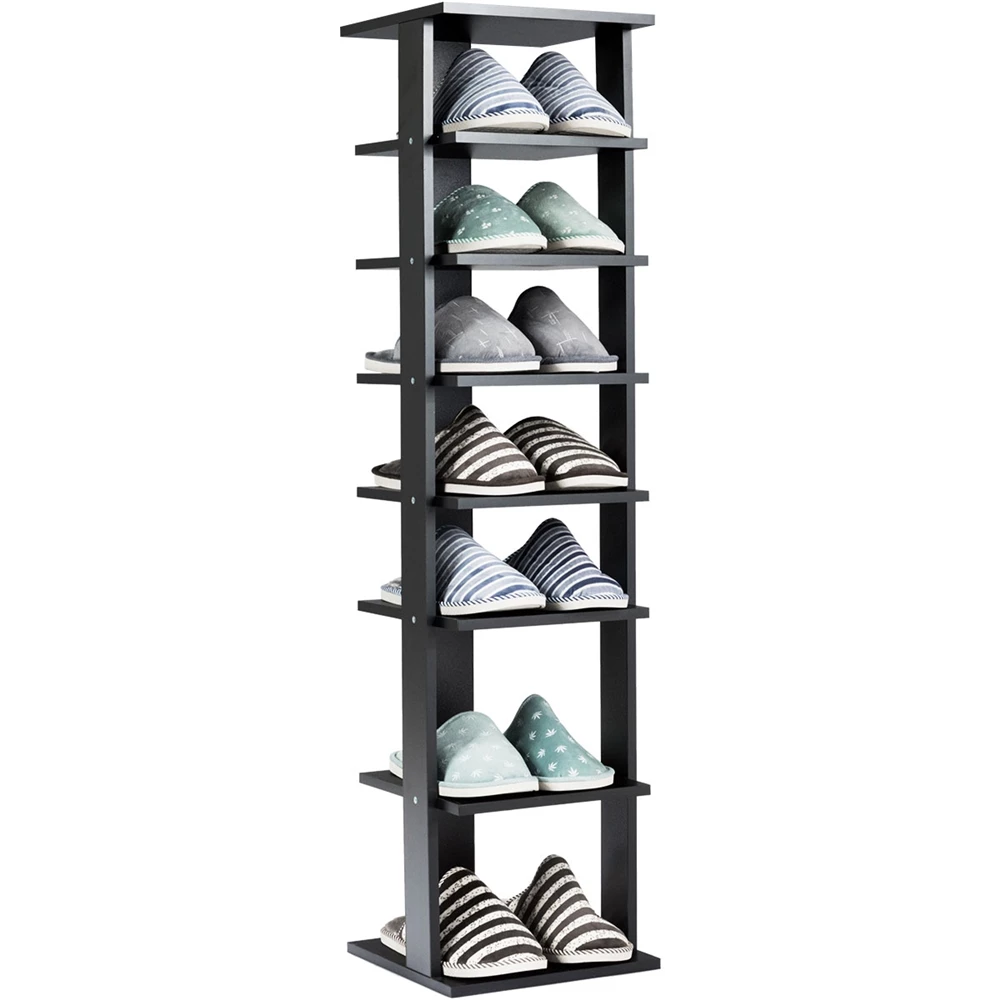Costway 7 Pair Black Wood Shoe Rack