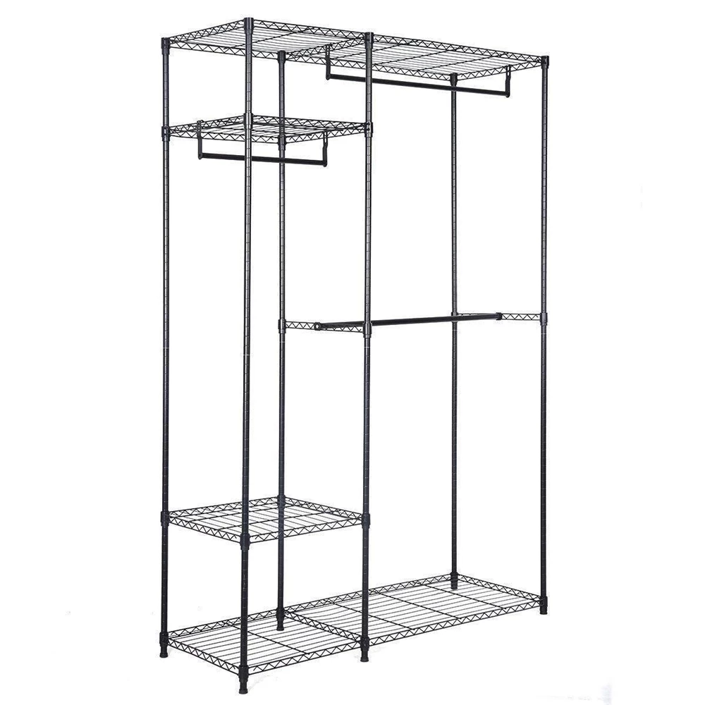 This durable and adjustable wardrobe is the perfect choice to hang clothes and store sweaters, hats, gloves, purses, shoes and totes.