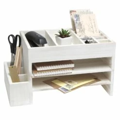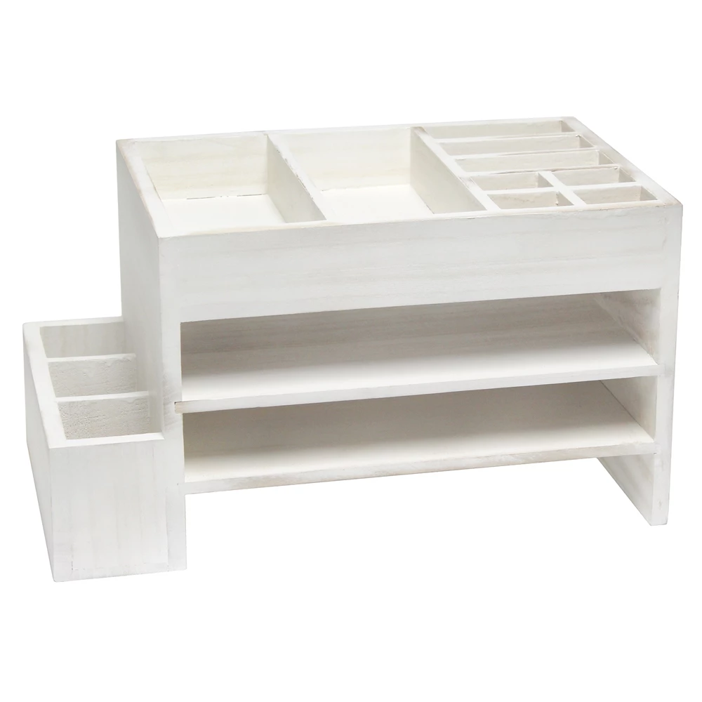 Keep your workstation both organized and stylish with this convenient and decorative wood desk organizer. It features 2 shelves and 12 compartments in different sizes for various office supplies. Perfect for keeping your home or work office organized in style!