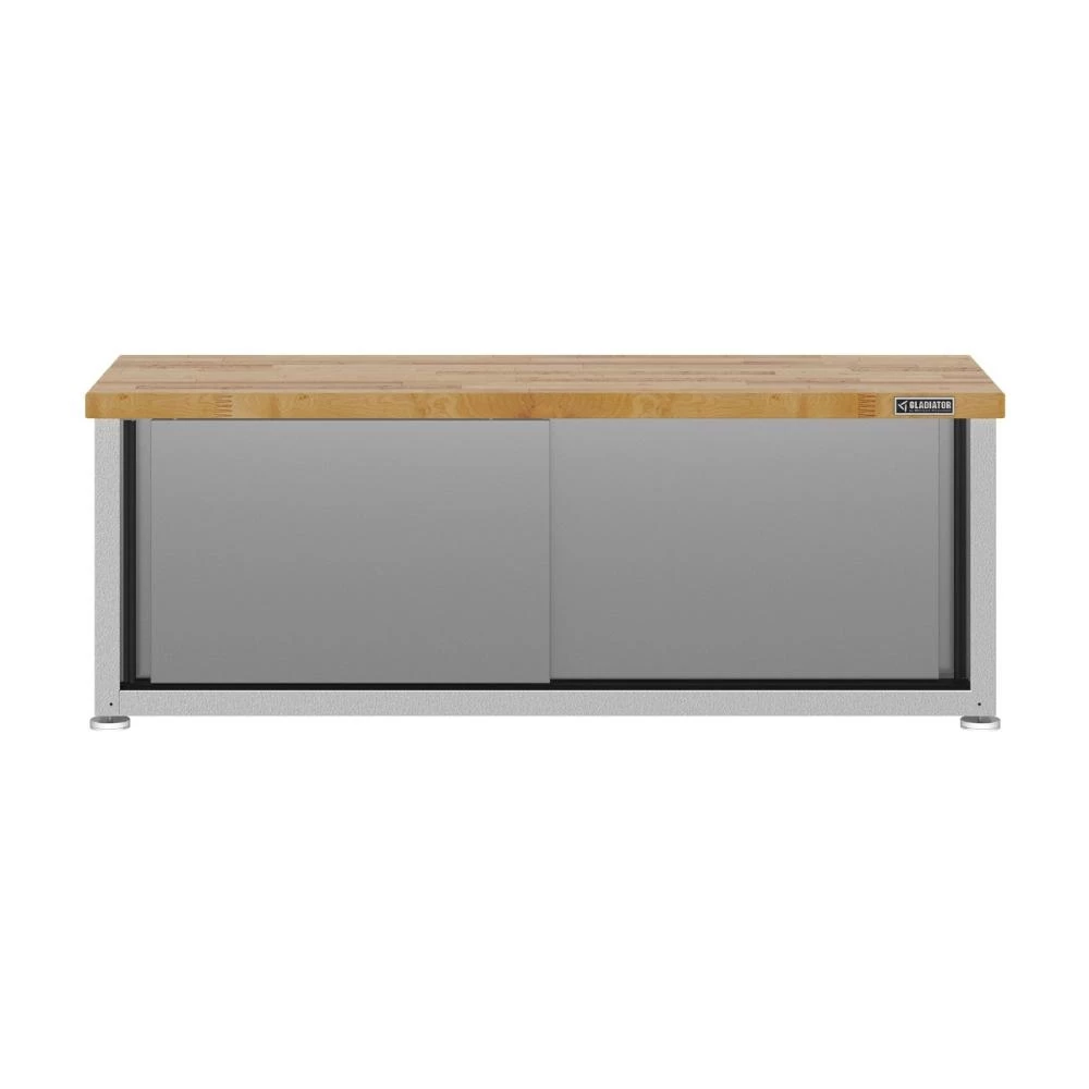 Sit, store, organize our largest storage shoe bench. A sturdy, solid hardwood top and heavy-duty steel frame hold up to 700 lb total weight capacity while sliding doors keep items like shoes and cleaning supplies out of sight. The Gladiator 54 Wide Storage Bench stands up to everyday demands and looks good in virtually any space.