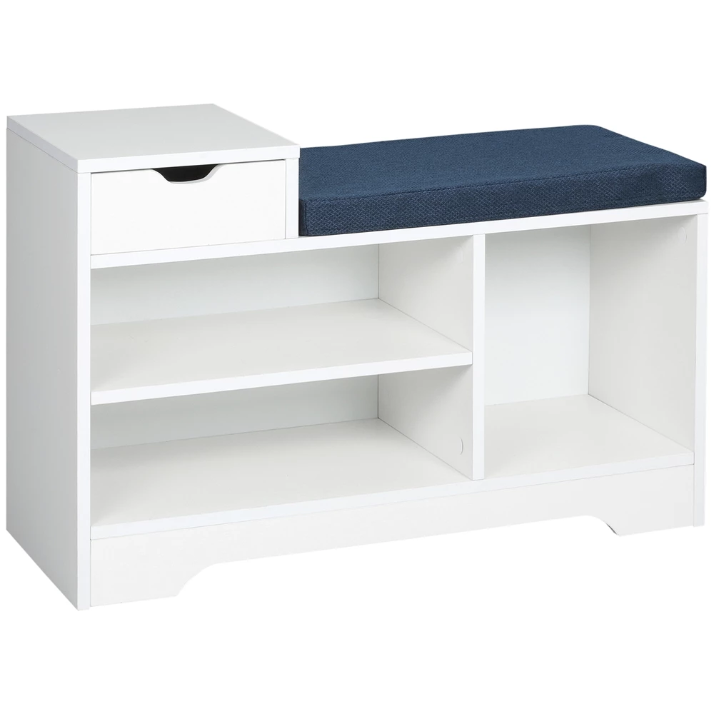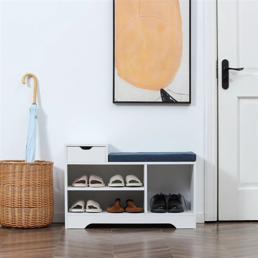 HomCom 5-Pair White Shoe Bench With Storage And Cushion