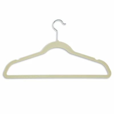 Velvet Touch Suit Hanger Beautiful, soft and durable this clothes hanger is contoured to keep shirts, dresses, jackets and pants perfectly wrinkle-free. 360 degree chrome, swivel rod hook to hang items easily on any closet rod, towel bar or standard size door Durable metal construction provides strength, reliability and long-lasting beauty Velvet coating is gentle on delicate garments and provides a non-slip surface that holds fabrics beautifully in place Slim, space-saving design makes the most use of available hanging space Shoulder notches Wraparound color card Limited lifetime warranty