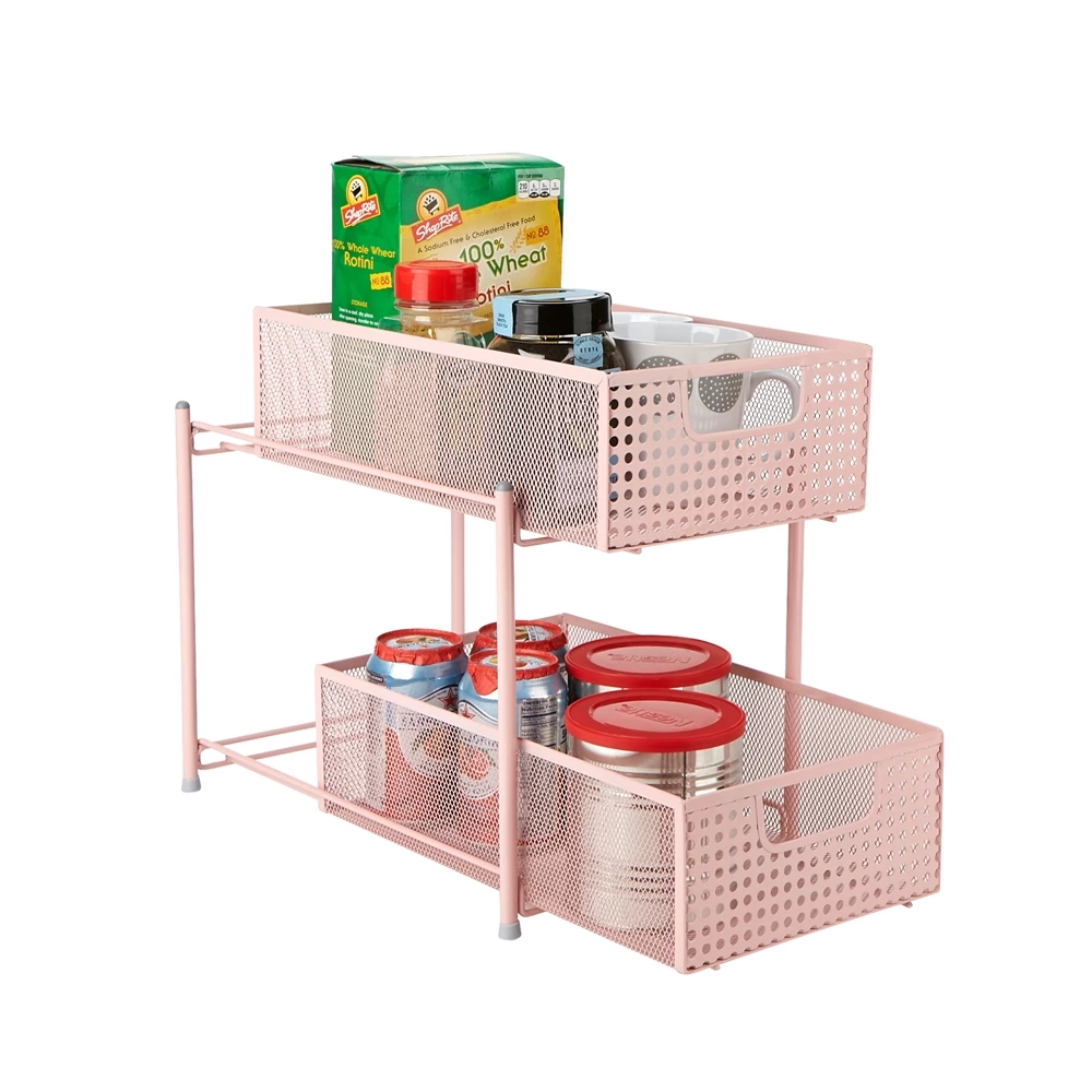 Mind Reader 9-in W X 10.5-in H X 14-in D Pink Metal Mesh Storage With Slide-Out Drawers
