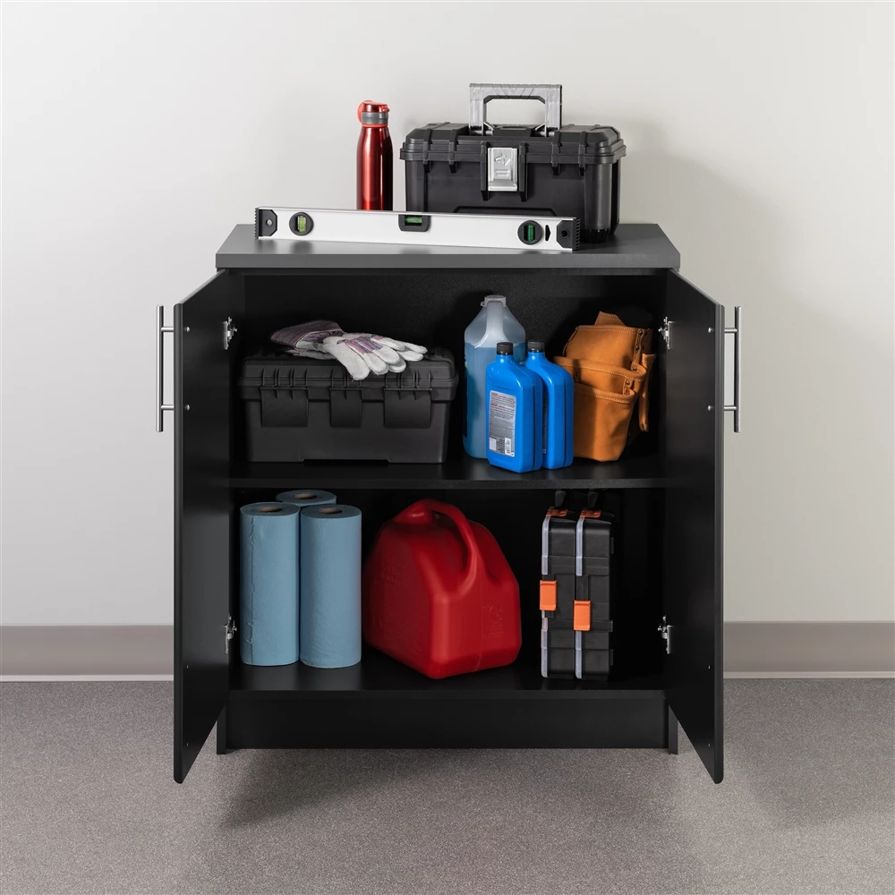 The Prepac Elite 32-in wide and 16-in deep base cabinet is the perfect addition to your laundry room, workshop or garage. The 1-in thick melamine countertop provides a durable work surface that will last through all your projects. With one adjustable shelf, this cabinet will accommodate anything you need to store in it. Combine it with other pieces in the Elite collection for a customized workspace. Constructed from non-toxic, CARB-2 compliant, laminated composite woods. Ships Ready to assemble, includes an instruction booklet for easy assembly. Manufactured in North America and meets all safety standards. 5-year manufacturer’s limited parts warranty.