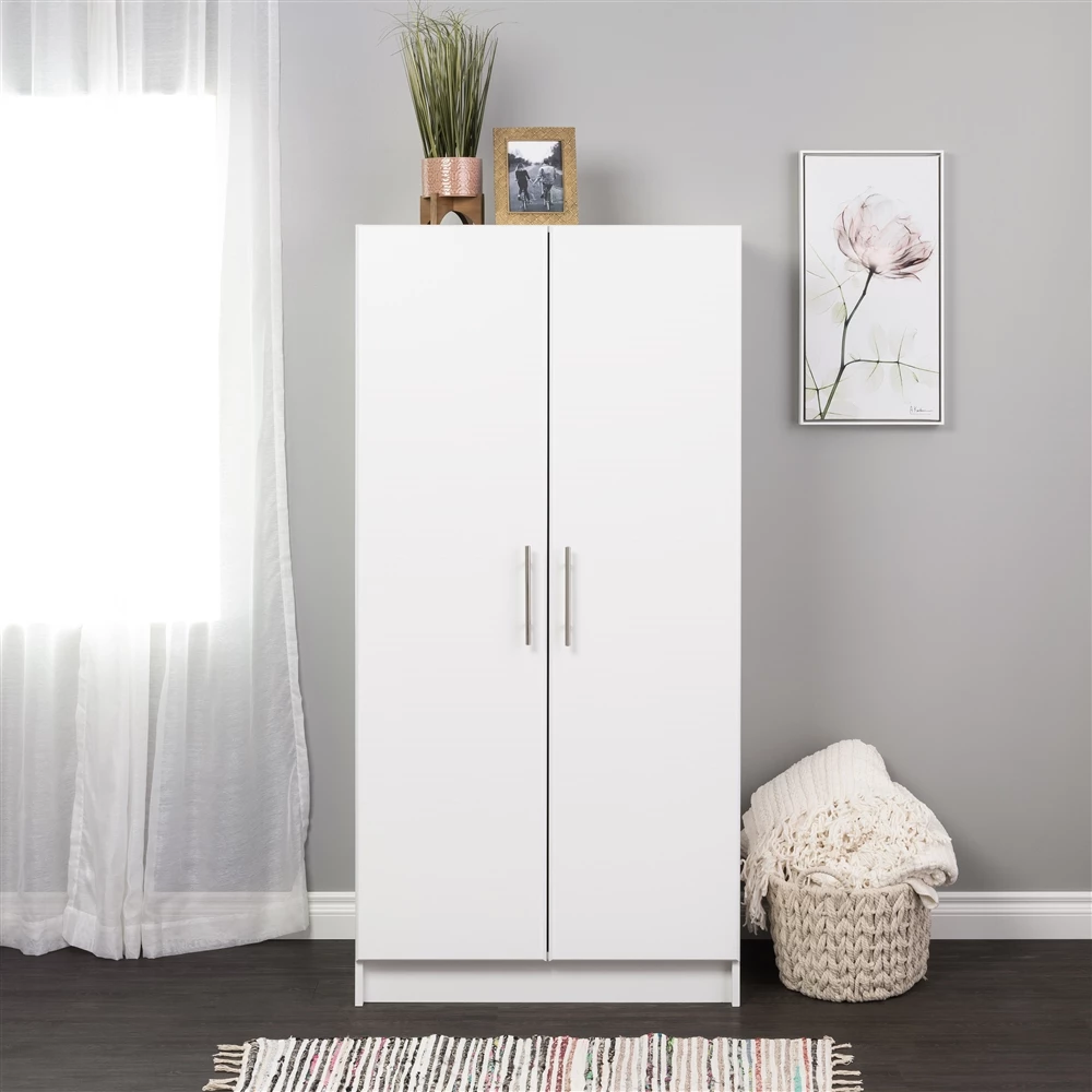 Prepac Elite Wardrobe Cabinet With Storage In White