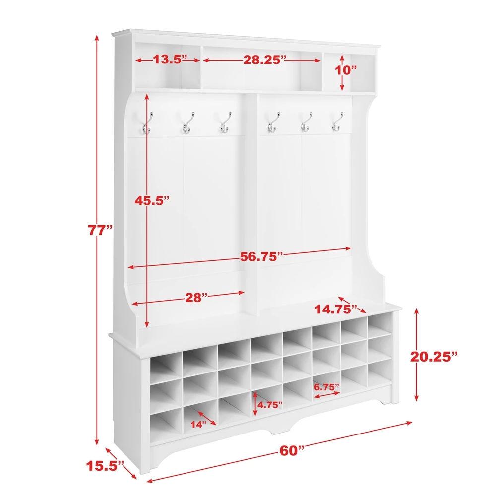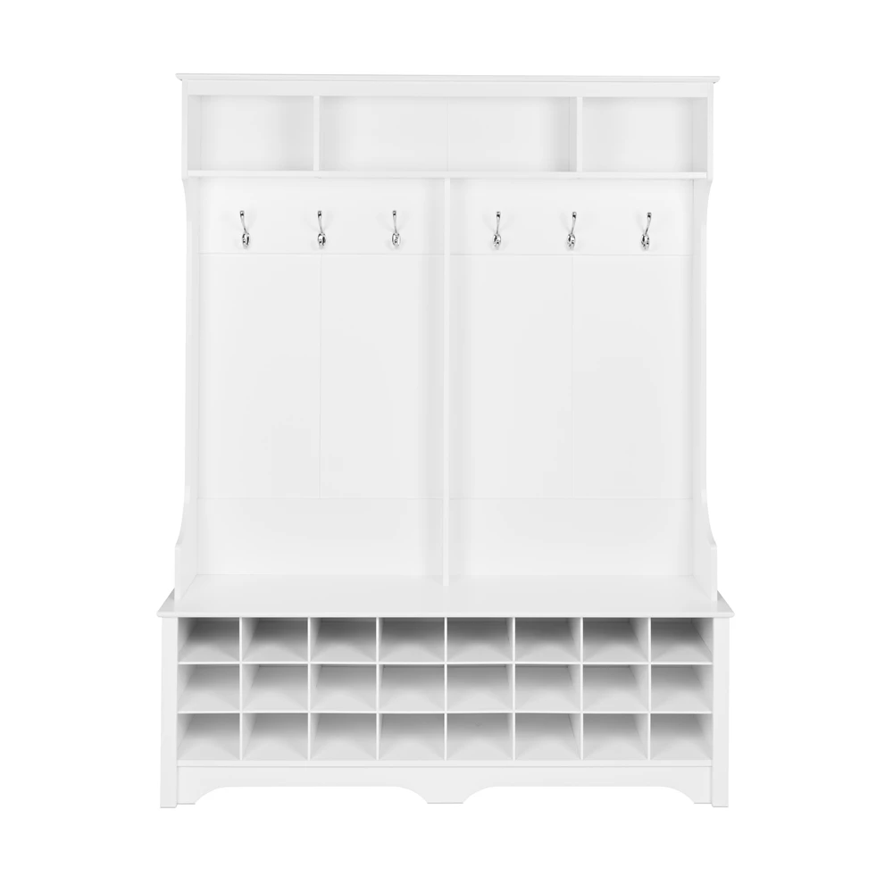 Prepac Wide Hall Tree With 24 Shoe Cubbies In White Finish – 77-in X 60-in X 15.5-in