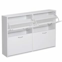 HomCom White Wood Contemporary Shoe Cabinet With Compartments