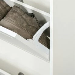 HomCom White Wood Compact Shoe Cabinet With Tilt-Out Drawers