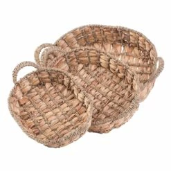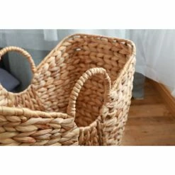 Vintiquewise 18-in X 8-in X 13-in Brown Water Hyacinth Basket – 3-Pack