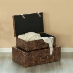 Vintiquewise 23-in X 8.25-in Brown Faux Leather Storage Trunk – Set Of 2