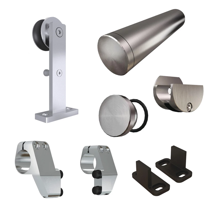 This stainless steel track and hardware kit includes 6’7-feet track, rollers and required hardware for installation. Soft rolling, the kit is ideal for doors up to 36 inches wide and door weight capacity up to 150 lb.