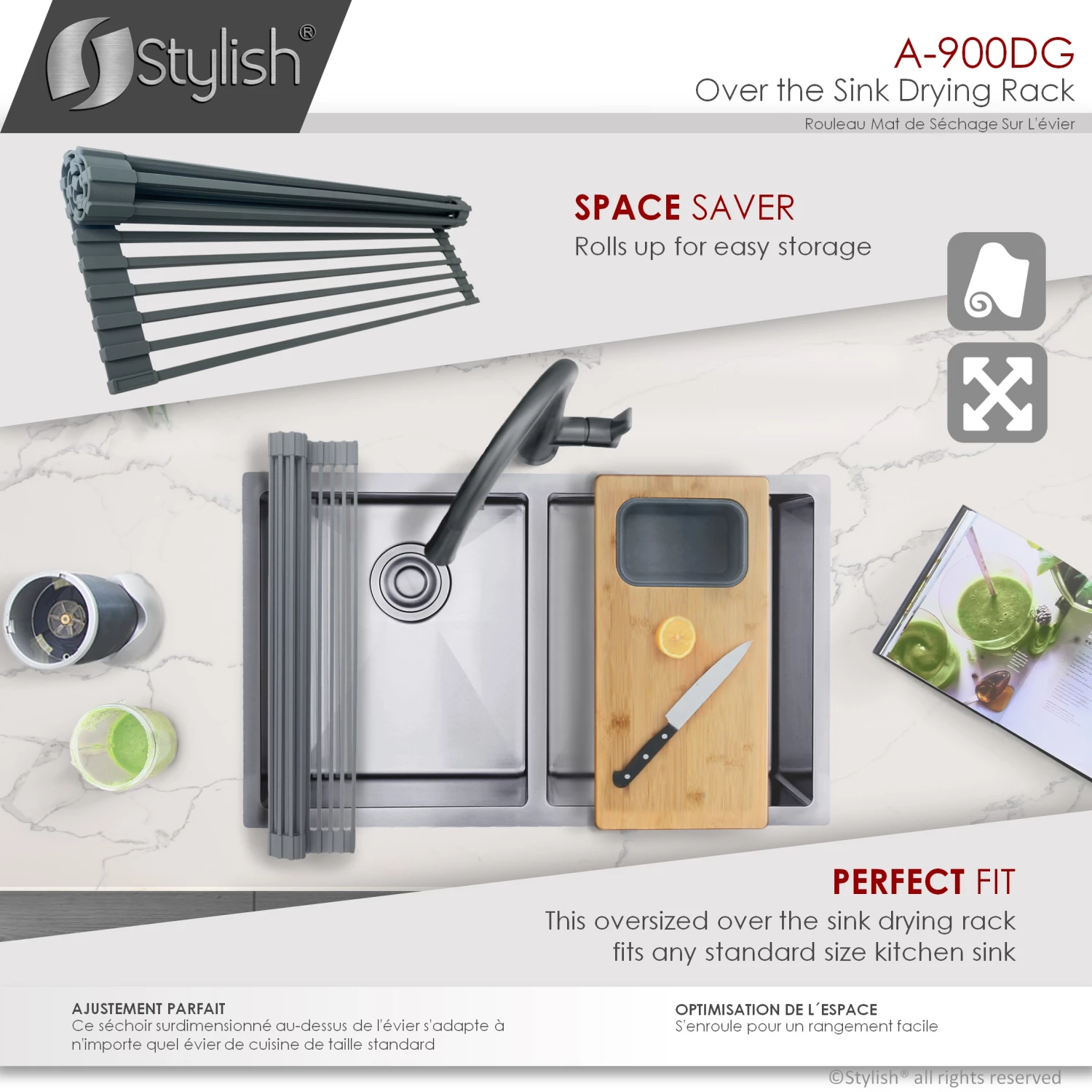 - This rack perfectly fit any single or double bowl kitchen sink. The ability to roll up make storage easy