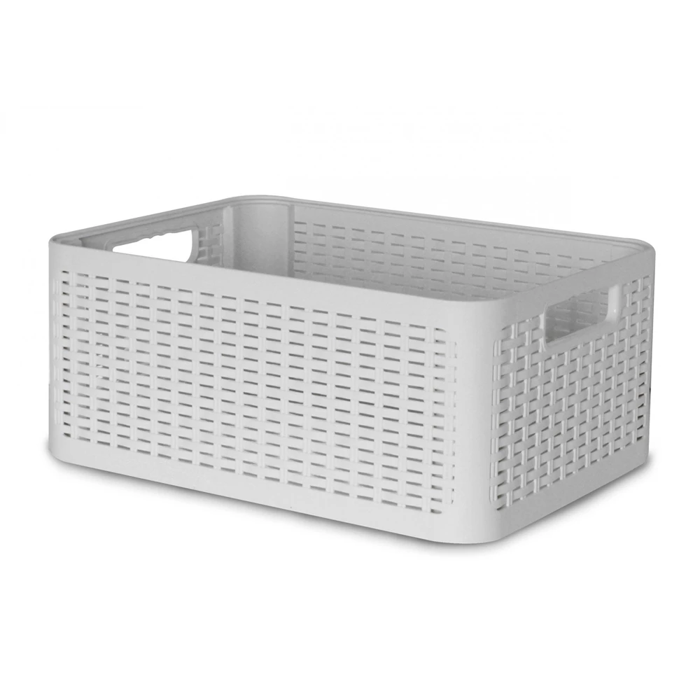 Add storage space to your home with this convenient 18.9-L storage box! Designed keep everything from office, laundry, kitchen, pantry and home supplies to craft supplies safely tucked away and stowed on shelves, in your closet, or under your bed. Each storage box features side handles for pulling the bin forward. When you’re ready to organize your home, this beige storage bin is just what you need to get started.