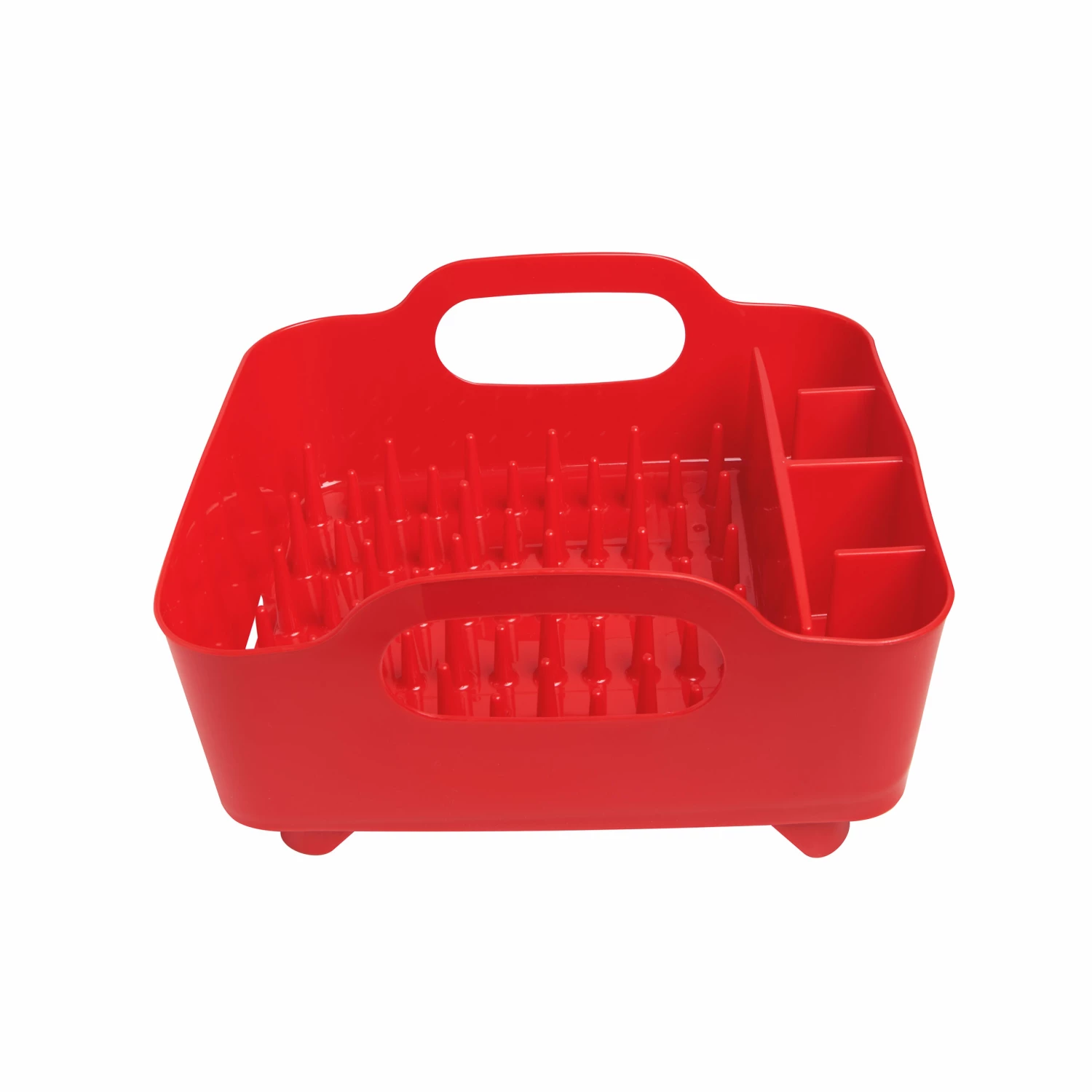 - ALL-IN-ONE SOLUTION: Tub durable BPA-free molded dish rack has it all: easy-to-clean, holds various dish sizes, built-in utensil holder, self-draining spout, easy grip handles for maximum portability even when fully-loaded