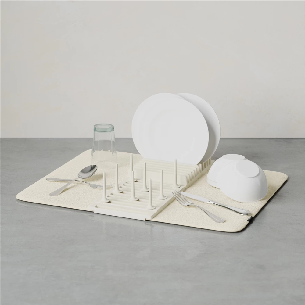 Umbra Udry 6.69-in W x 18.32-in L Off-White Plastic Dish Rack with Drying Mat