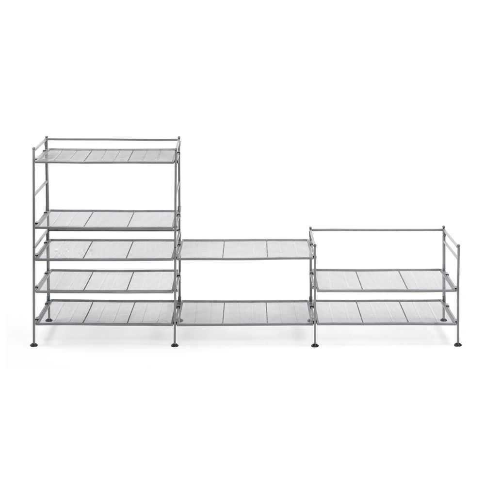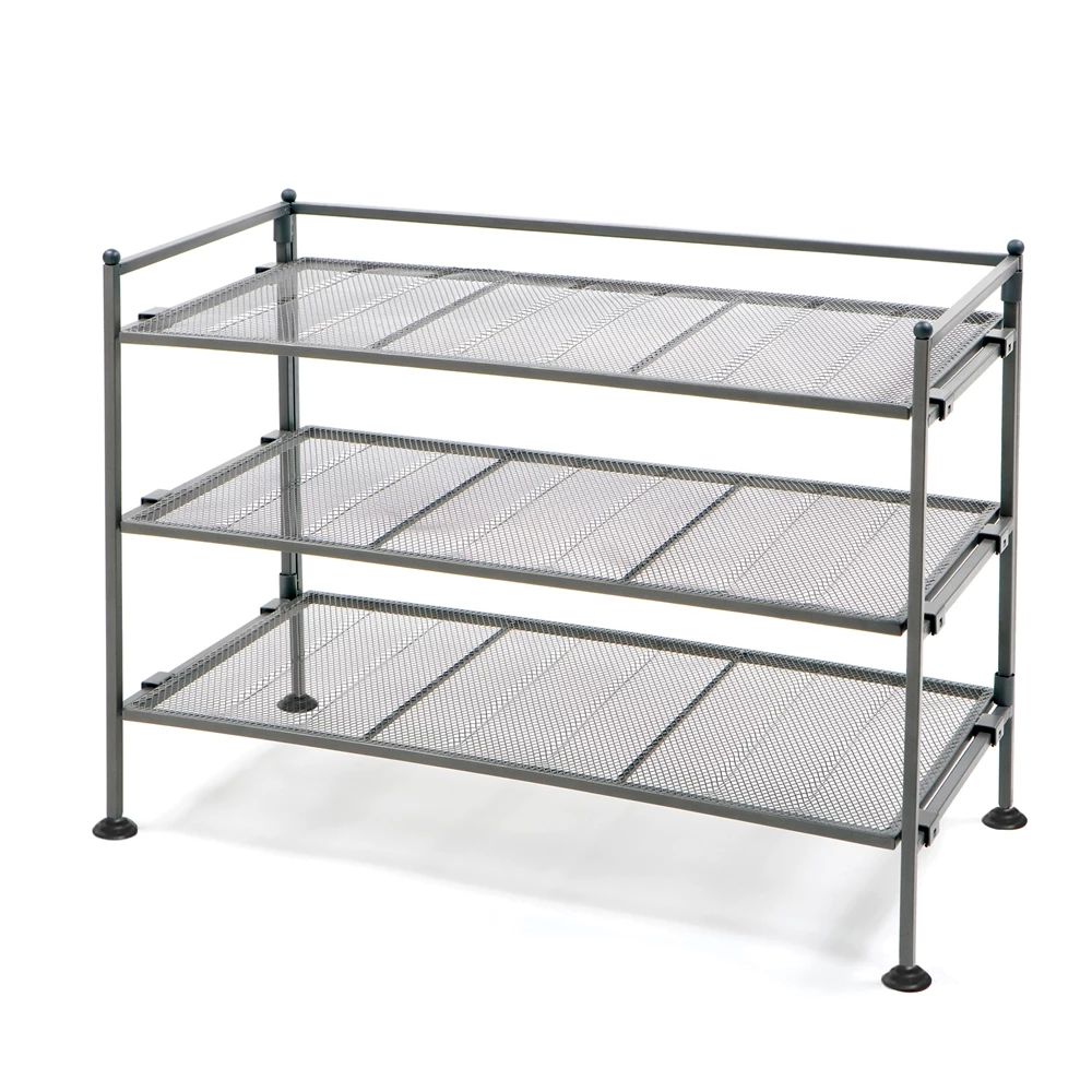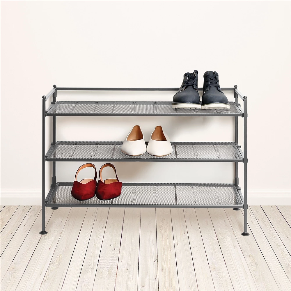 Keep your shoes organized with this stackable 3-tier mesh shoe rack. It features removable mesh panels for connecting multiple shoe racks together.