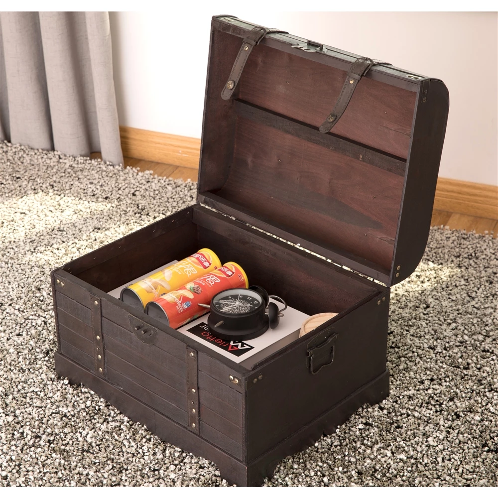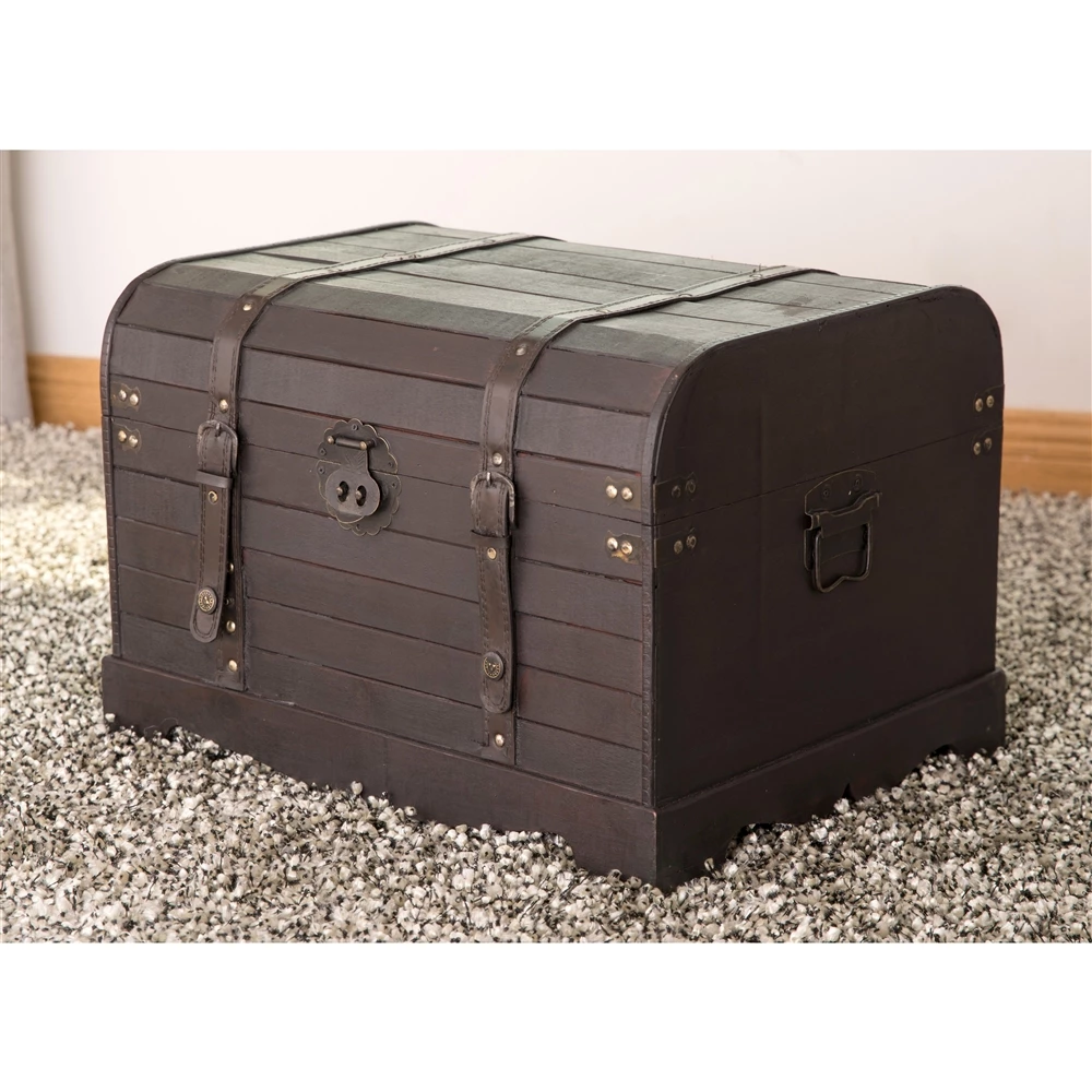 Vintiquewise 15.75-in x 13.75-in Black Wood Storage Trunk