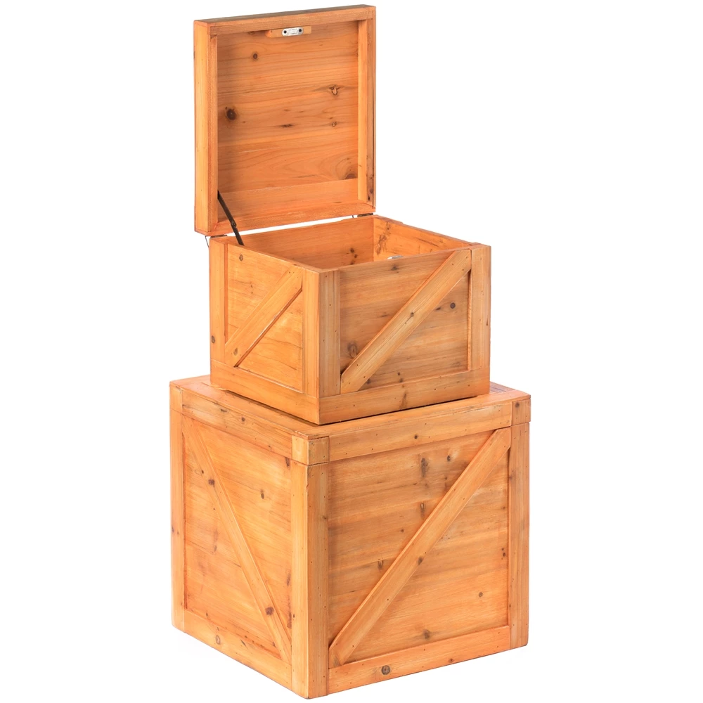 Vintiquewise 16.5-in X 15.25-in Brown Wood Storage Trunk – Set Of 2