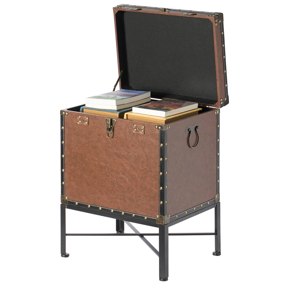 Vintiquewise 18-in X 25.25-in Brown/Black Faux Leather Storage Trunk