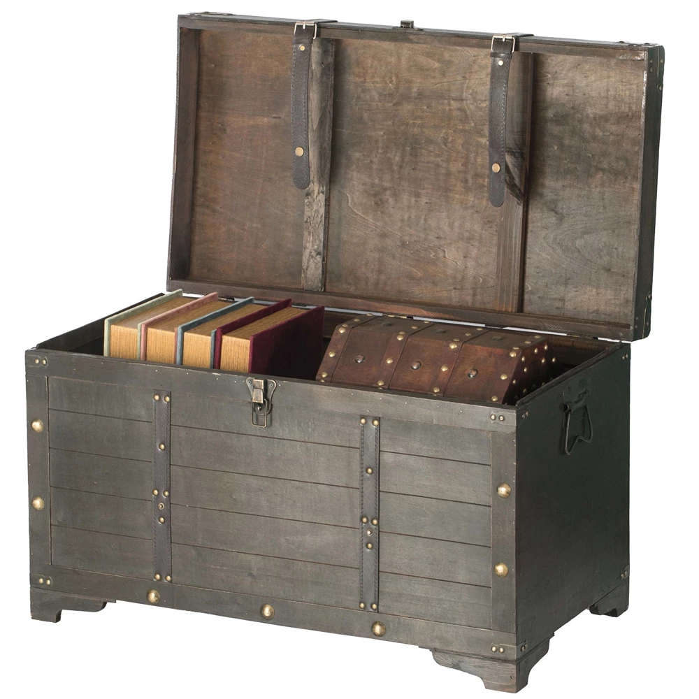 Vintiquewise 31.5-in X 19.75-in Brown Wood Storage Trunk