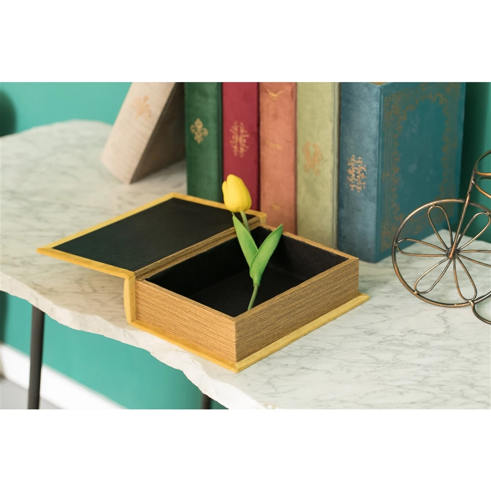Vintiquewise 7-in W X 9-in H X 2-in D Yellow Wooden Book Shaped Box