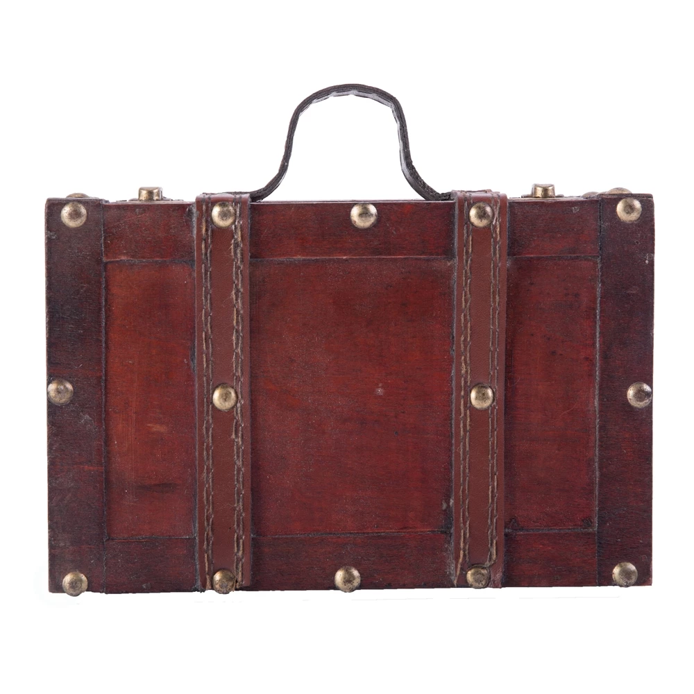 This vintage-style suitcase will add visual interest to any space. With decorative leather straps and a sturdy wooden exterior, it will add a charming touch to your home or your office. It’s also an ideal storage solution for play cards, mementos and business cards.