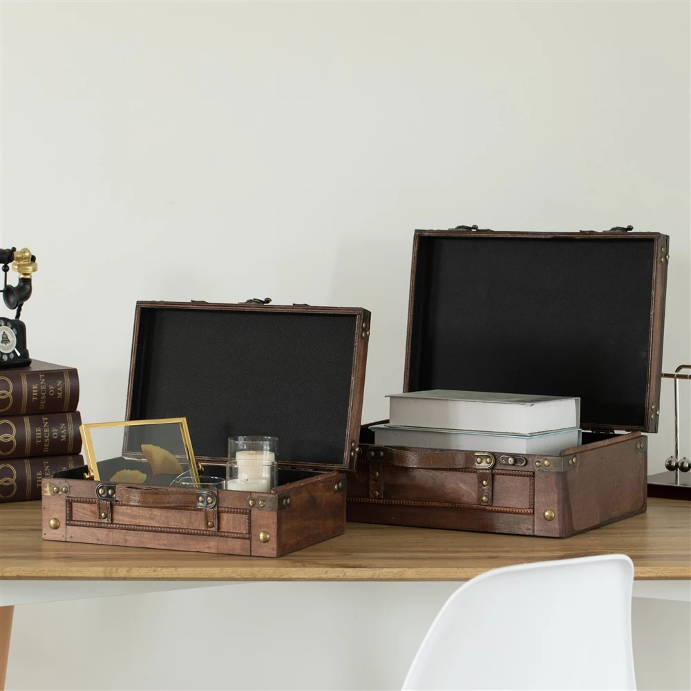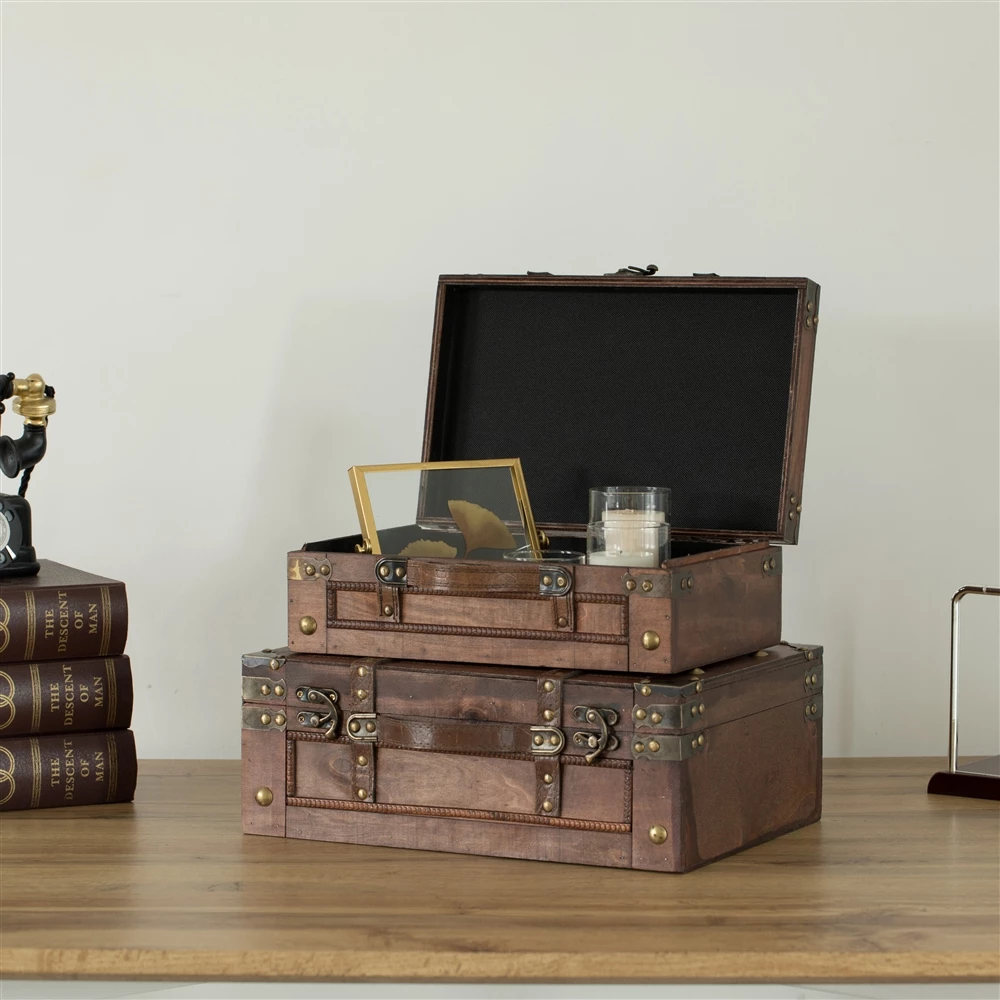 This antique style trunk set makes a statement while keeping your stuff organized and neat. Great to store souvenirs from adventures or display them as decor. It can be used for storing treasured items, receipts, important papers and family photos. This storage chest luggage can be used in the dining room, living room, and bedroom.