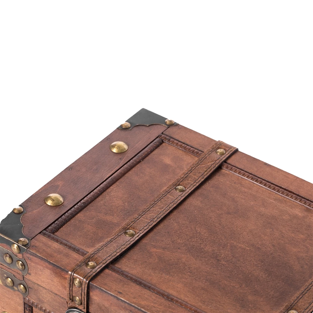 Vintiquewise Small Wooden Storage Trunk With Faux Leather Belt – Brown